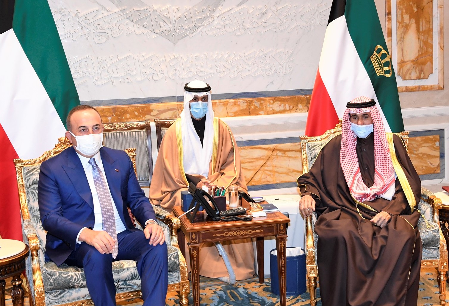 التقي أمير دولة الكويت، الشيخ نواف الأحمد الجابر الصباح، الثلاثاء، بوزير الخارجية التركي مولود تشاووش أوغلو، الذي يجري حالياً جولة خليجية بدأها بالكويت. وذكرت وكالة الأنباء الكويتية (كونا) أن وزير الخارجية الكويتي، الشيخ أحمد الناصر، ووزير شؤون الديوان الأميري الشيخ علي جراح الصباح ونائبه، ورئيس الديوان الأميري الشيخ مبارك فيصل سعود الصباح، وآخرين، حضروا لقاء أمير الكويت بالوزير التركي.