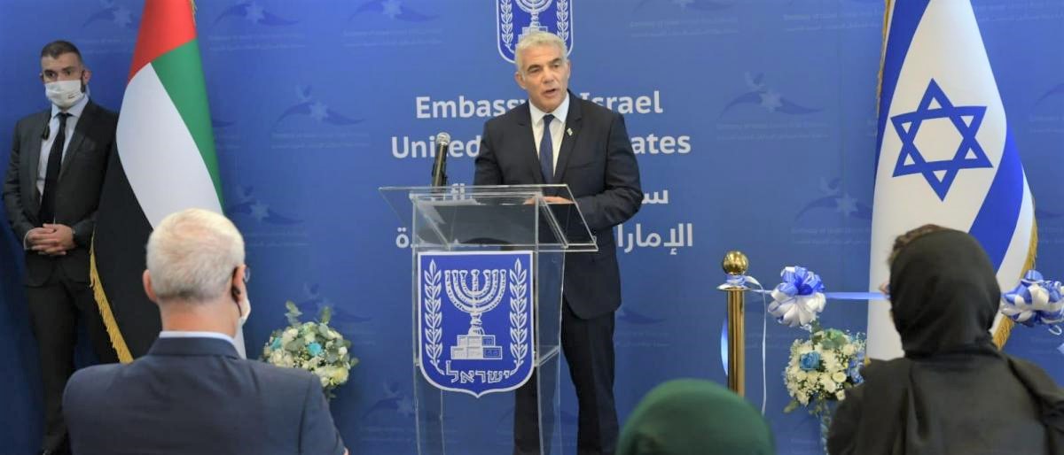 افتتح وزير الخارجية الإسرائيلي يائير لابيد، الثلاثاء، سفارة “إسرائيل” بالعاصمة الإماراتية أبوظبي، بعد ساعات من وصوله إلى الدولة الخليجية، في أول زيارة لوزير إسرائيلي منذ تطبيع العلاقات بين الجانبين، العام الماضي. ونشر حساب “إسرائيل في الخليج” التابع للخارجية الإسرائيلية مقطعاً مصوراً لـ”حفل تدشين سفارة إسرائيل في الإمارات العربية المتحدة”.
