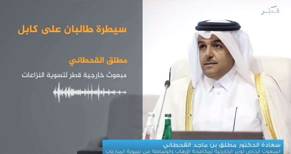 وقال سعادته – في تصريح لـ “تليفزيون قطر” – “قطر مستمرة في دورها طالما أن هناك دورا لدولة قطر يمكن أن تقوم به يمكن أن تقوم به لتحقيق السلام في أفغانستان”. أضاف القحطاني : “نحن لدينا قناعة تامة أنه لا يوجد حل عسكري لهذه النزاعات ولابد من حلها من خلال المفاوضات والحل السلمي”.
