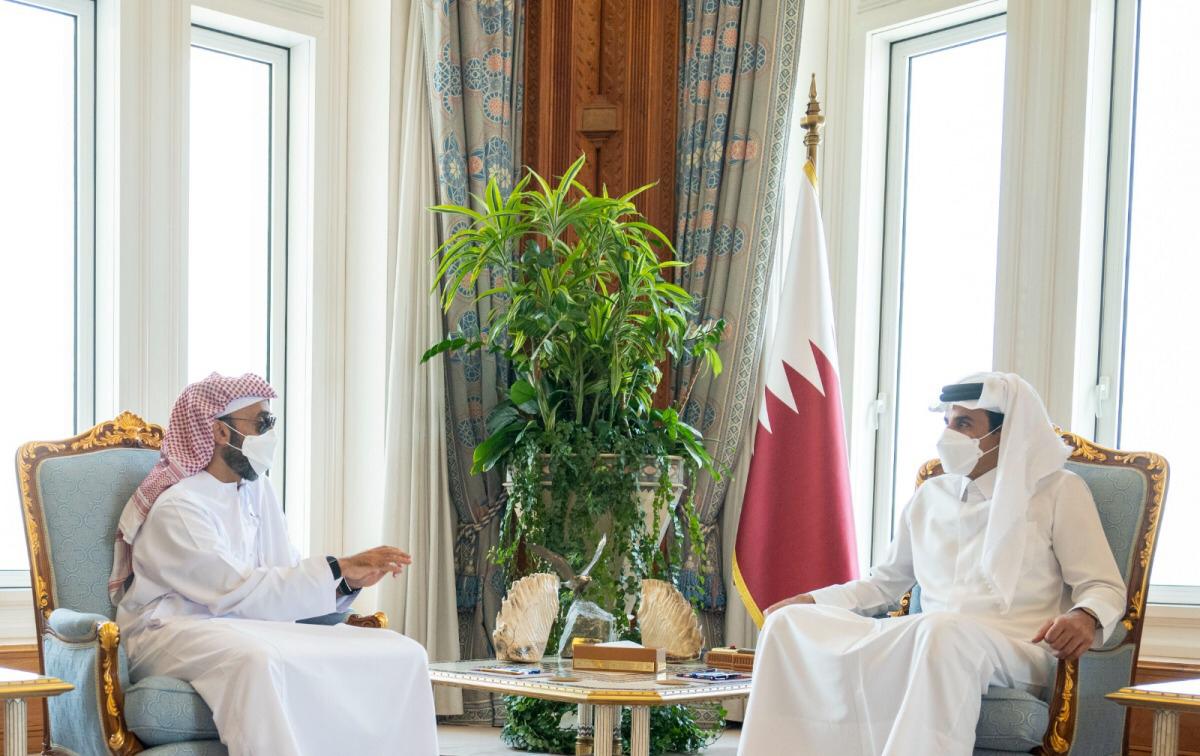 وفي بداية المقابلة، نقل سمو الشيخ طحنون بن زايد آل نهيان تحيات صاحب السمو الشيخ خليفة بن زايد آل نهيان رئيس دولة الإمارات العربية المتحدة الشقيقة، وصاحب السمو الشيخ محمد بن راشد آل مكتوم نائب رئيس الدولة رئيس مجلس الوزراء حاكم دبي، وصاحب السمو الشيخ محمد بن زايد آل نهيان ولي عهد أبوظبي نائب القائد الأعلى للقوات المسلحة، وتمنياتهم لسمو الأمير بموفور الصحة والسعادة وللشعب القطري مزيدا من التقدم والرخاء.