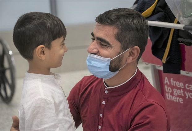 لكن شاءت الأقدار أن يصل علي إلى الدوحة ليتلقى الرعاية والاحتضان طيلة فترة وجوده إلى أن حان الوقت ليلتم شمله مع والده في كندا. وبعد التنسيق بين الحكومتين القطرية والكندية، استقل علي رحلته إلى تورنتو ليلتقي بوالده- الذي كان يدير تجارة فواكه مجففة في أفغانستان وانتقل إلى كندا – أول مرة بعد عامين. ونقلت الصحيفة أن والده كان في حالة من الصدمة بعد احتضان ولده ولم تسعفه الكلمات للتعبير عن فرحته، وقال بأنه لم ينم منذ أسبوعين قلقاً على ولده. وقال مسؤول في الخارجية القطرية للصحيفة حول إذا ما كانت قطر ستساعد عائلة الطفل في الخروج من أفغانستان بأن حكومته ستساعد إذا طلب منها. وعلى متن طائرة خاصة نظمتها قطر، استطاع 43 كندياً الأسبوع الماضي من الخروج من أفغانستان إلى الدوحة ومن ثم إلى كندا.