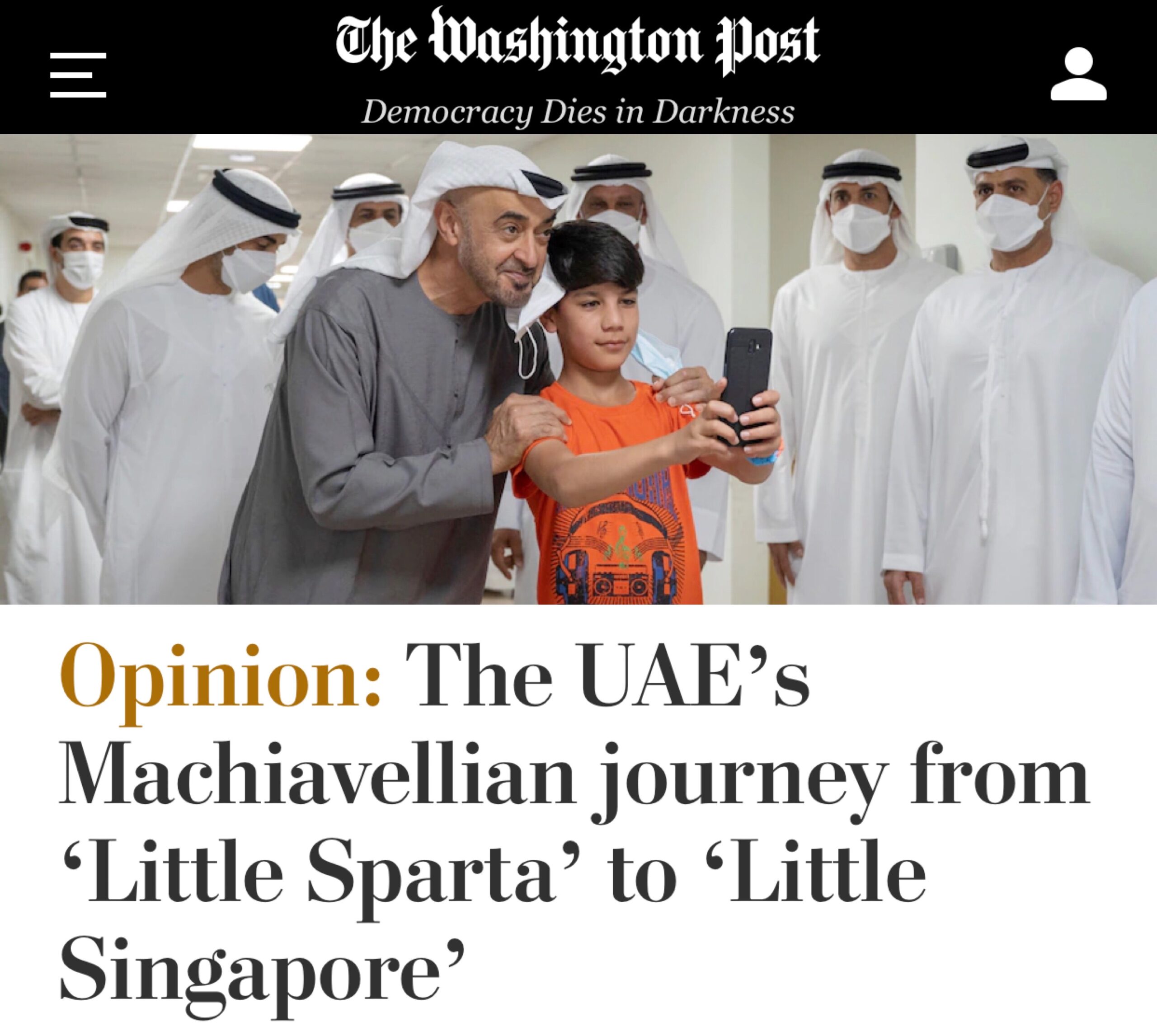 ما الذي يدفع الإمارات لتغيير سياستها الخارجية من الصدام إلى الحوار. سؤال طرحه المعلق ديفيد إغناطيوس في صحيفة “واشنطن بوست” وصف فيه رغبة الإمارات في التخلص من وصف “إسبرطة المحاربة” والرغبة بأن تتحول إلى “سنغافورة الصغيرة”.