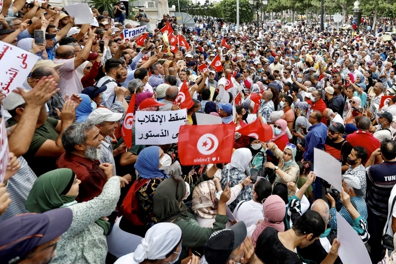 وتأتي هذه الاحتجاجات -وهي الأكبر حجما منذ الإجراءات التي اتخذها سعيد قبل نحو شهرين- عقب دعوات من نشطاء تونسيين إلى الاحتجاج رفضا لما يسمونه بالانقلاب على المؤسسات الشرعية وعلى دستور البلاد.