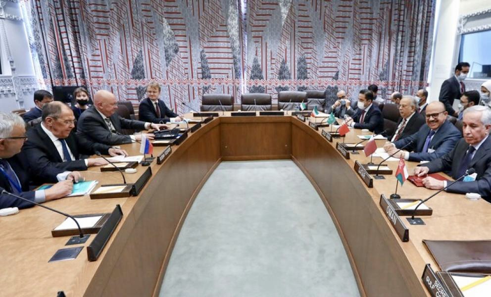وبحسب البيان، فإنه جرى خلال اللقاء تأكيد أهمية تعزيز التنسيق بين روسيا والدول الأعضاء في مجلس التعاون الخليجي من أجل استقرار الوضع ومنع التصعيد في هذه المنطقة ذات الأهمية الاستراتيجية.واقترح لافروف خلال جلسة مجلس الأمن الدولي، في أكتوبر 2020، العمل على خطوات عملية لتأسيس نظام فعال للأمن الجماعي في الخليج العربي لوقف التصعيد، مضيفاً بأن النظام سيكون بمشاركة الدول دائمة العضوية بمجلس الأمن (روسيا وأمريكا والصين وفرنسا وبريطانيا)، مع جامعة الدول العربية، ومنظمة التعاون الإسلامي، وغيرها من الأطراف المعنية.