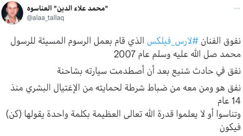 لارش مات حرقاً ..مصرع السويدي صاحب الرسوم المسيئة جراء حادث سيارة !