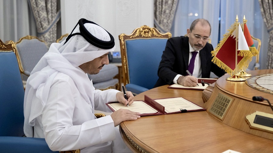 وقع سعادة الشيخ محمد بن عبدالرحمن آل ثاني نائب رئيس مجلس الوزراء وزير الخارجية، وسعادة السيد أيمن الصفدي نائب رئيس الوزراء ووزير الخارجية وشؤون المغتربين بالمملكة الأردنية الهاشمية، مساء اليوم، اتفاقية حول الإعفاء المتبادل من التأشيرة لحاملي جوازات السفر الدبلوماسية والخاصة بين حكومة دولة قطر وحكومة المملكة الأردنية الهاشمية، ومذكرة تفاهم بين جهاز قطر للاستثمار وشركة إدارة الاستثمارات الحكومية الأردنية “جيماك”، وذلك بمناسبة الزيارة الرسمية التي يقوم بها جلالة الملك عبدالله الثاني ابن الحسين ملك المملكة الأردنية الهاشمية الشقيقة للبلاد.