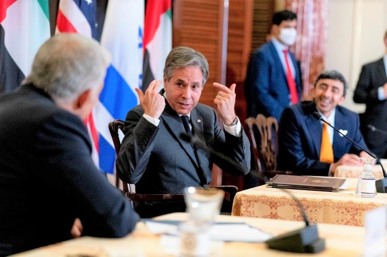 وتابع “متأكد أن هذه الاجتماعات سيكون لها تأثير إيجابي على المنطقة”. وشدد على أن نجاح العلاقات الإماراتية الإسرائيلية سيشجع الإسرائيليين والفلسطينيين على رؤية “أن هذا المسار يؤتي ثماره. هذا المسار لا يستحق الاستثمار فيه فحسب، بل والمخاطرة كذلك”. وشكر وزير الخارجية الإماراتي الولايات المتحدة على جهدها “لبناء الجسور بين الإمارات وإسرائيل باعتبارهما دولتين ناجحتين”. أما وزير الخارجية الإسرائيلي، يائير لبيد فأشاد بعلاقة بلاده مع الإمارات، وقال إنها “مبنية على الشراكة والصداقة ومكافحة العنف والإرهاب ونشر التسامح”. وأضاف “إسرائيل والإمارات أصبحتا شريكتين على أساس من القيم المشتركة.. نكتب فصلا جديدا من التاريخ على أساس من الأمل”. وقال وزير الخارجية الإسرائيلي إن “بيتي مفتوح للوفد الإماراتي وزوجتي تنتظر دعوة أفراده على العشاء”.