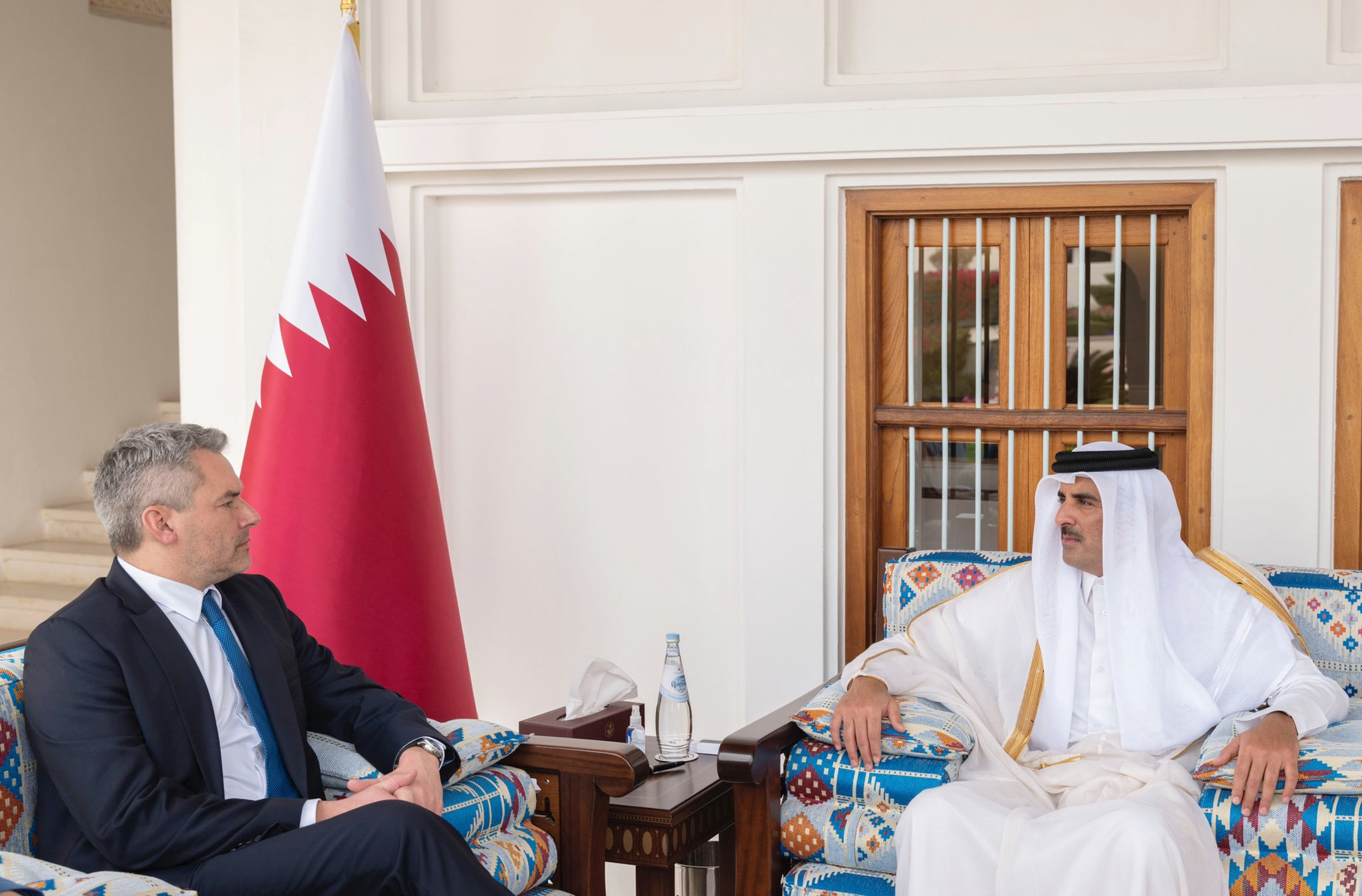 استقبل حضرة صاحب السمو الشيخ تميم بن حمد آل ثاني أمير البلاد المفدى، بمجلس الشيخ عبدالله بن جاسم في الديوان الأميري، صباح اليوم، دولة السيد كارل نيهامر المستشار الاتحادي لجمهورية النمسا والوفد المرافق.