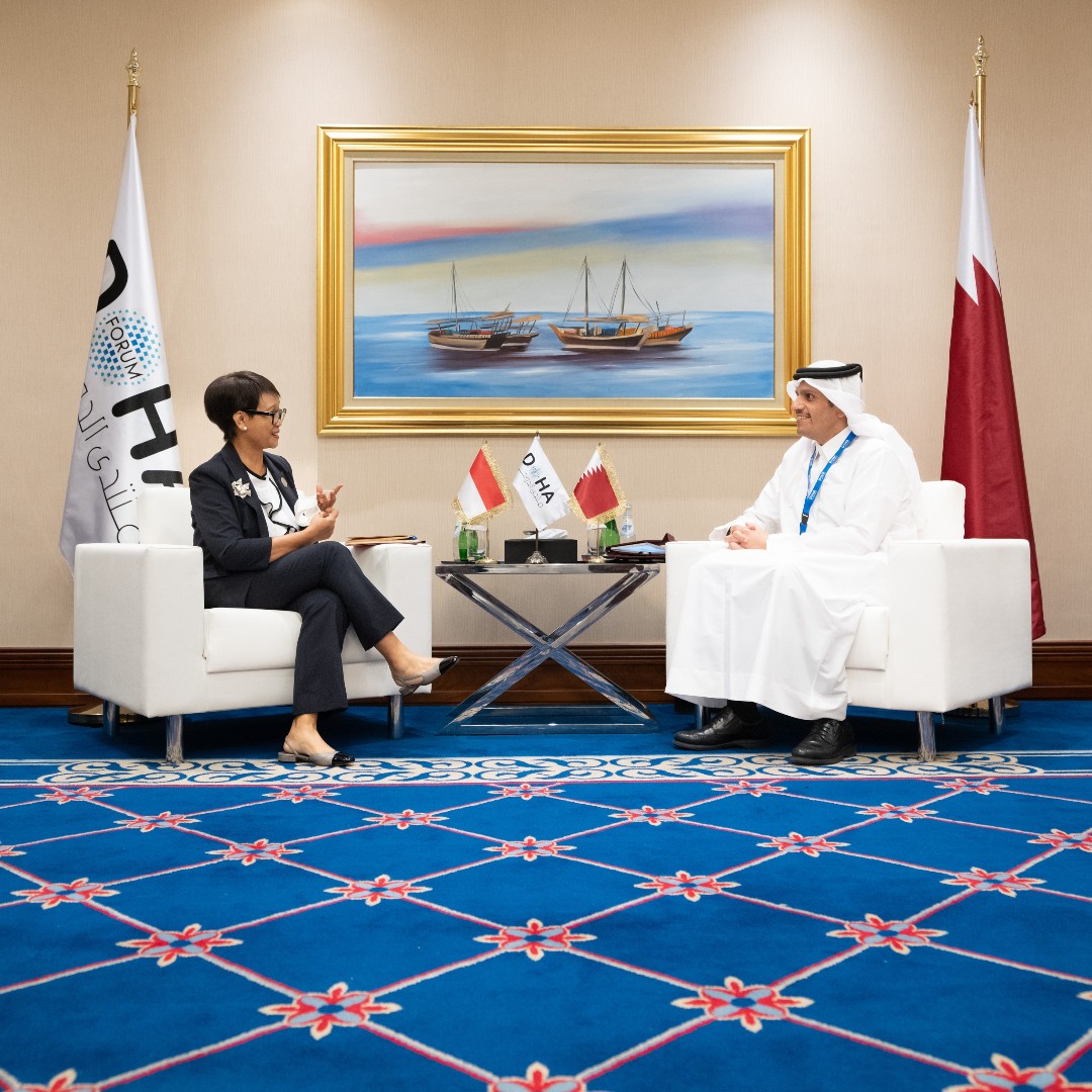 اجتمع سعادة الشيخ محمد بن عبدالرحمن آل ثاني نائب رئيس مجلس الوزراء وزير الخارجية، اليوم، مع سعادة السيدة ريتنو ليستاري بريانساري مارسودي وزيرة الشؤون الخارجية في جمهورية إندونيسيا، وذلك على هامش منتدى الدوحة. جرى خلال الاجتماع استعراض علاقات التعاون الثنائي وسبل دعمها وتطويرها، بالإضافة إلى الموضوعات ذات الاهتمام المشترك. ووقع سعادة نائب رئيس مجلس الوزراء وزير الخارجية، وسعادة وزيرة الشؤون الخارجية الإندونيسية، خطاب نوايا بين وزارتي الخارجية في البلدين بشأن تقديم المساعدات الإنسانية والإنمائية للشعب الأفغاني.