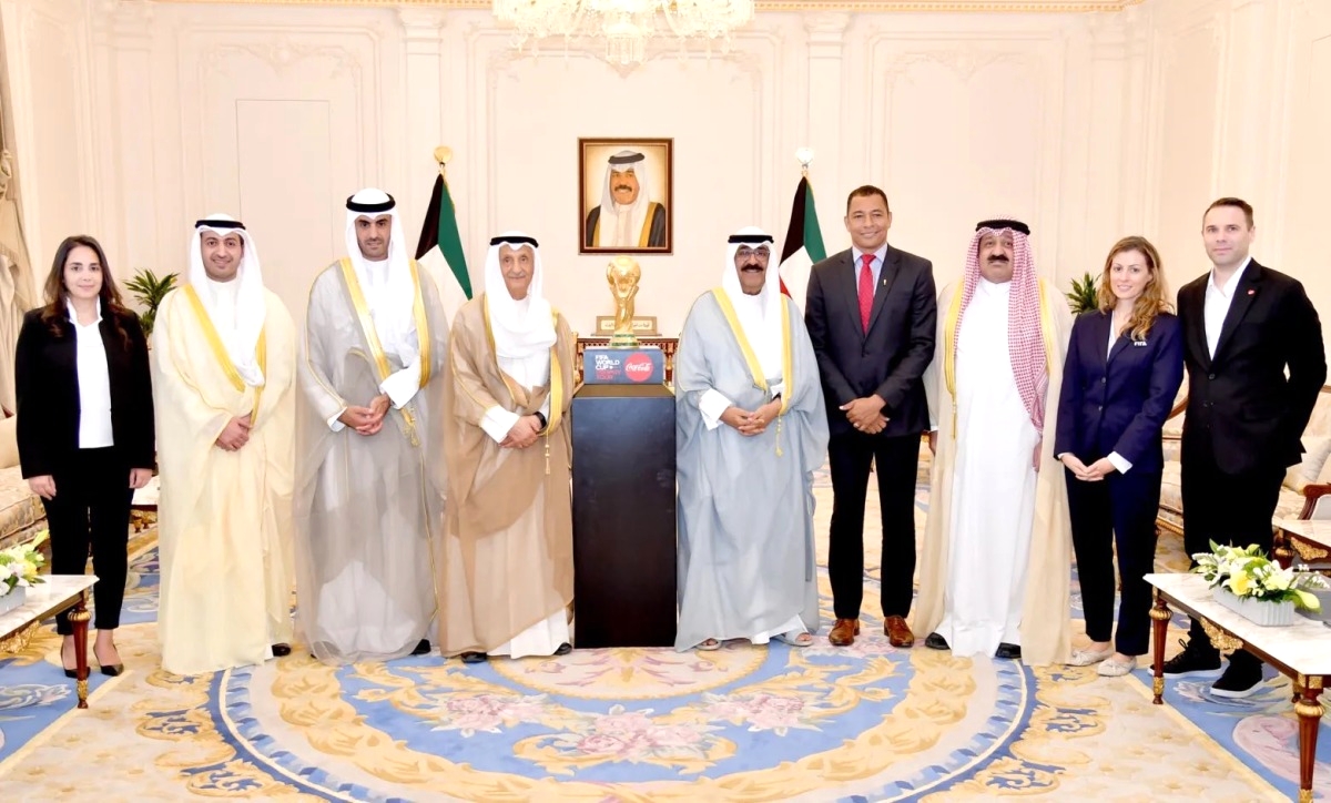 استقبل سمو نائب أمير الكويت وولي العهد الشيخ مشعل الأحمد الجابر الصباح بقصر بيان بالكويت اليوم، الوفد المعني بجولة كأس العالم الترويجية للاتحاد الدولي لكرة القدم «فيفا» المقرر إقامتها في قطر 2022.