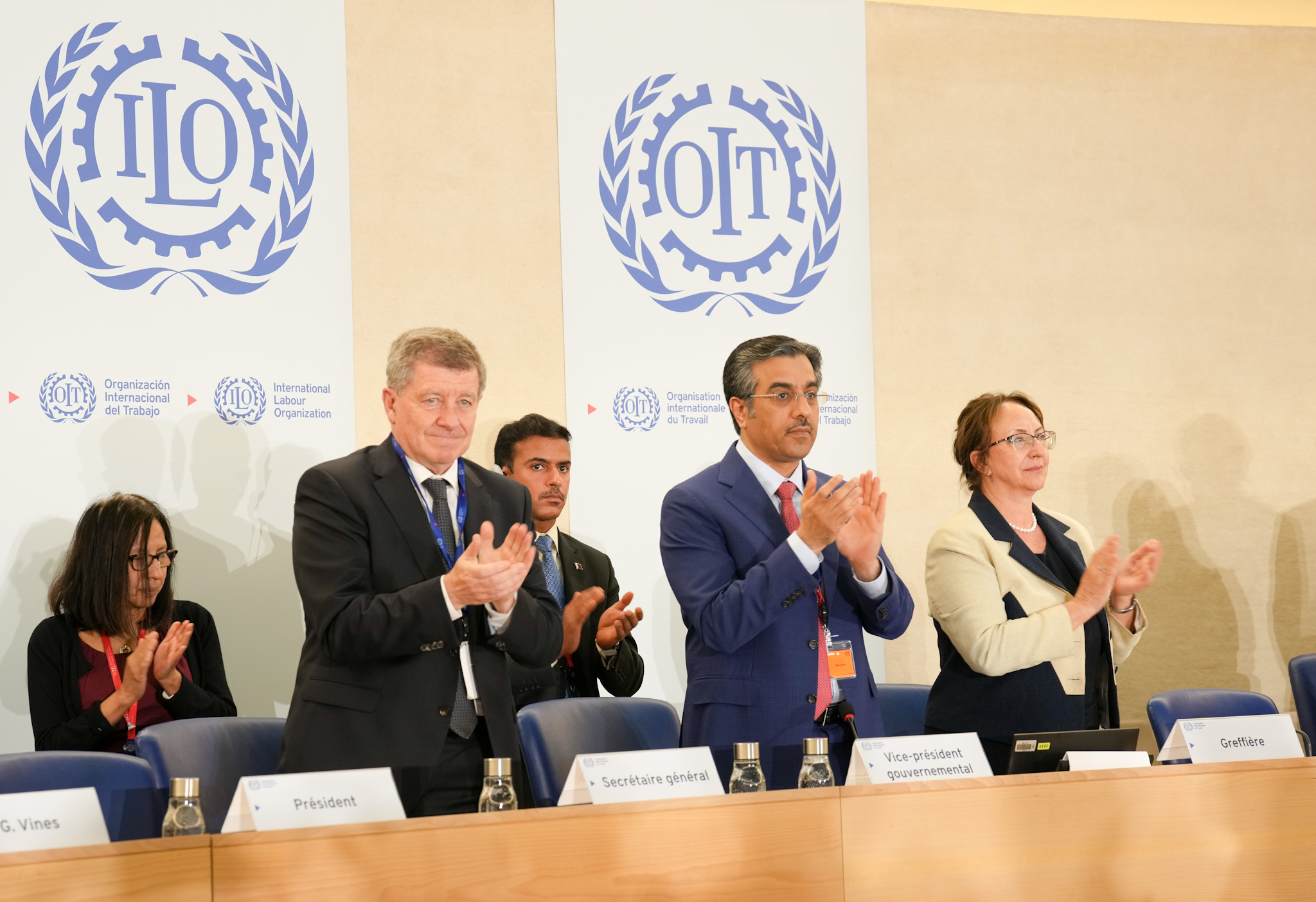 اعتمد مؤتمر العمل الدولي، في دورته الـ 110 المنعقدة في جنيف، خلال جلسته العامة العاشرة برئاسة سعادة الدكتور علي بن صميخ المري وزير العمل، قرارا تاريخيا حول إدراج بيئة عمل آمنة وصحية في إطار منظمة العمل الدولية بشأن المبادئ والحقوق الأساسية في العمل.