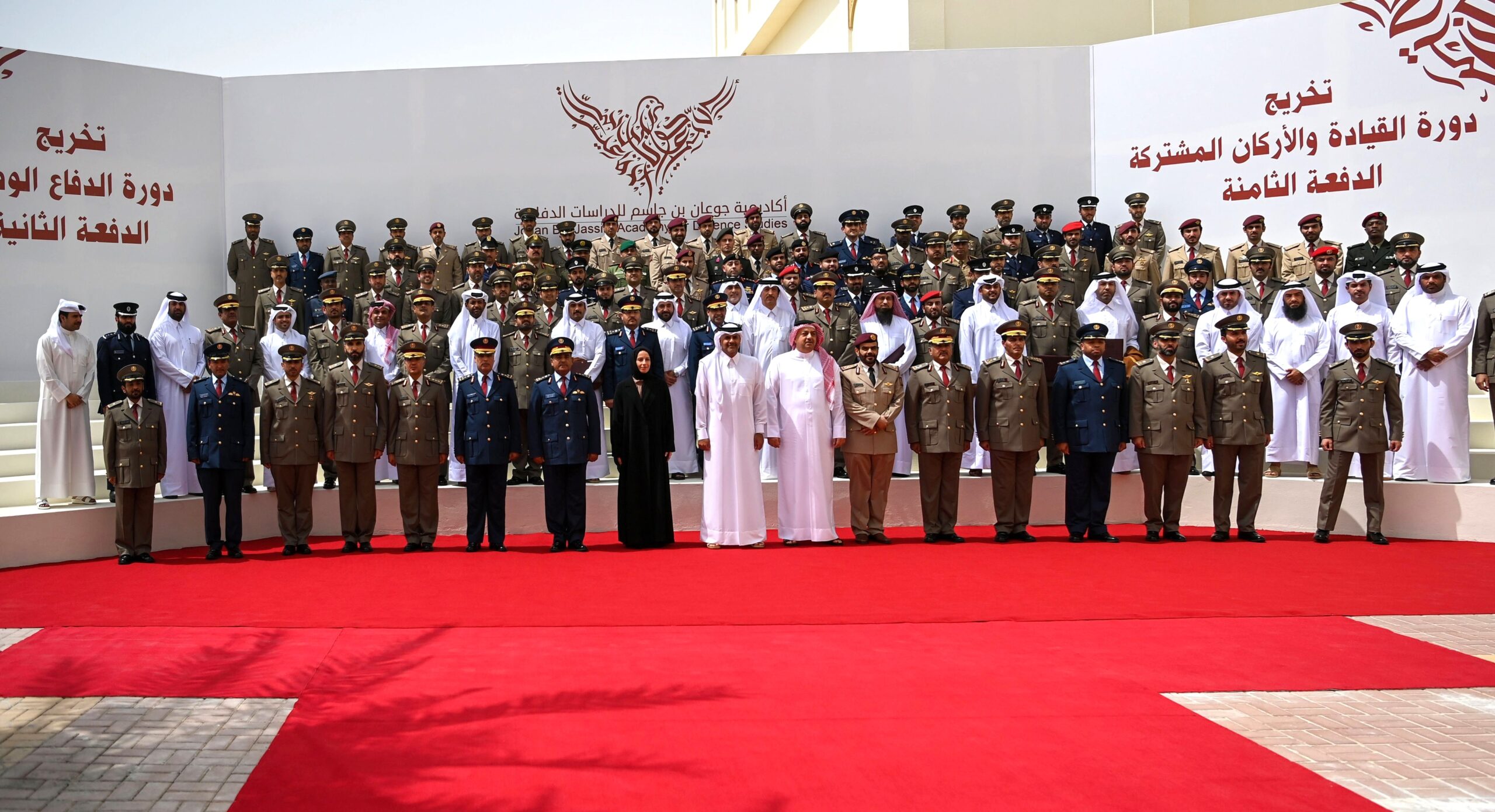 شهد معالي الشيخ خالد بن خليفة بن عبدالعزيز آل ثاني رئيس مجلس الوزراء ووزير الداخلية، صباح اليوم، حفل تخريج دورتي الدفاع الوطني رقم (2) والأركان المشتركة رقم (8) بمقر أكاديمية جوعان بن جاسم للدراسات الدفاعية بمدينة الخور.