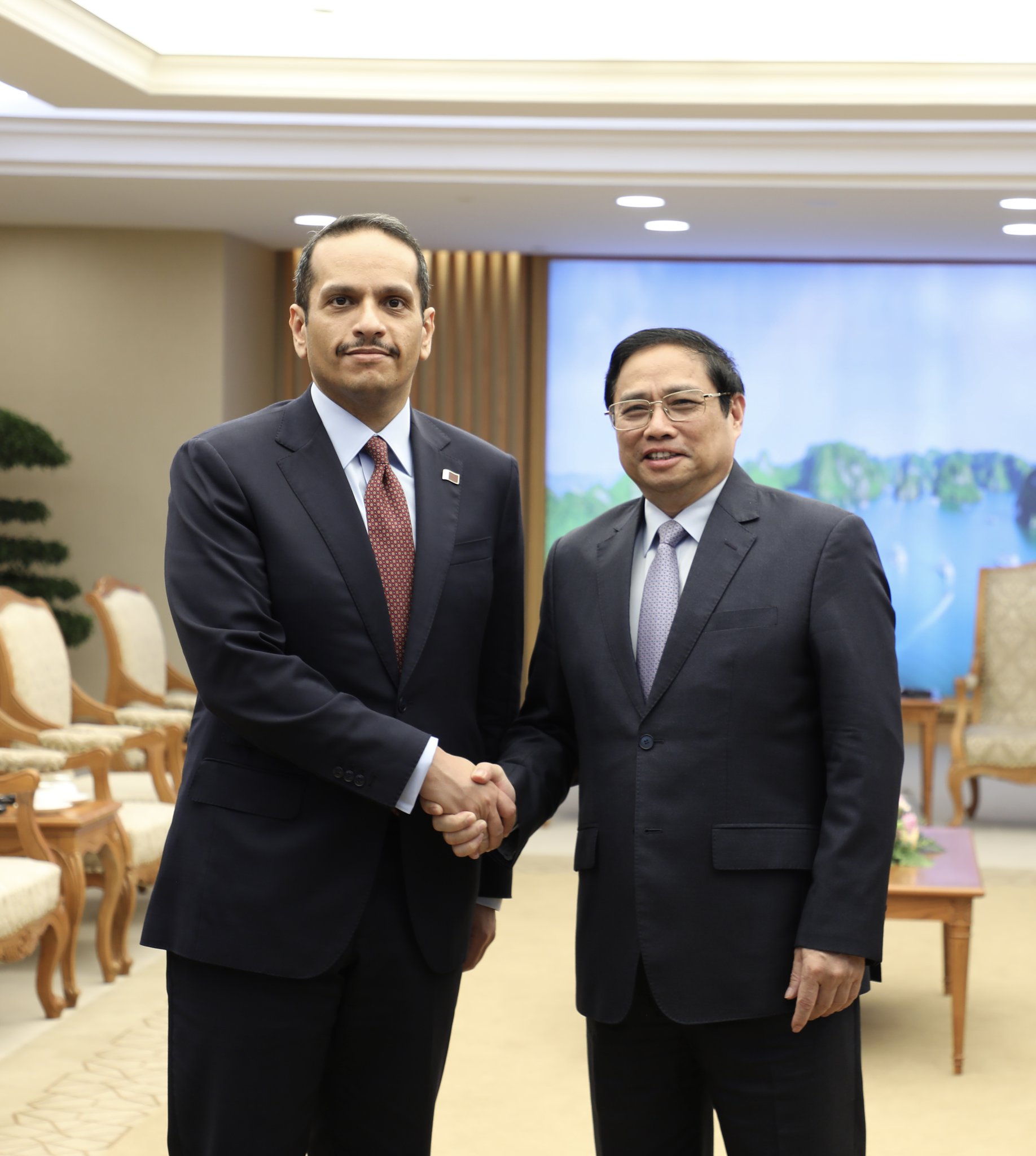 اجتمع دولة السيد فام مينه تشينه رئيس وزراء جمهورية فيتنام الاشتراكية، اليوم، مع سعادة الشيخ محمد بن عبدالرحمن آل ثاني نائب رئيس مجلس الوزراء وزير الخارجية، الذي يزور فيتنام حاليا.