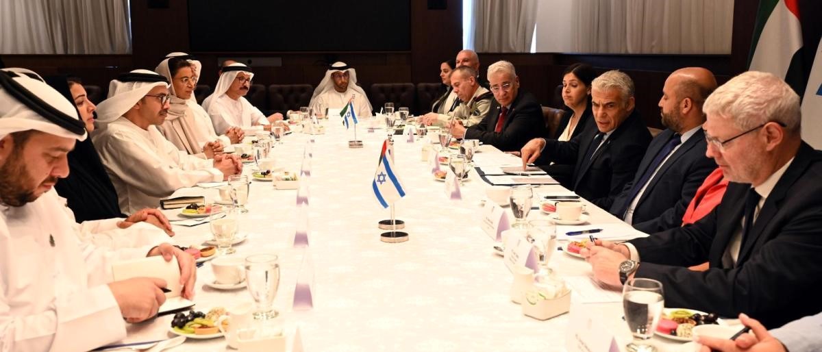 وقال مكتب لابيد إن الأخير وبن زايد عقدا اجتماعاً مغلقاً قبل أن يعقد اجتماعاً آخر بحضور مسؤولين من الجانبين؛ لـ”بحث مواصلة تعزيز العلاقات بما يخدم الاستقرار الإقليمي”. كما بحث الجانبان أيضاً مواصلة التطوير الاقتصادي والتعاون في مجالات الزراعة والطاقة والمياه والأمن الغذائي.