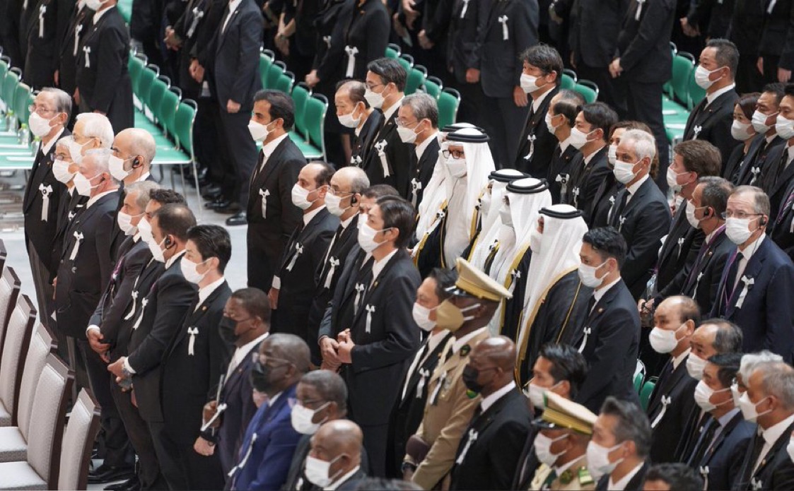 حضر صاحب السمو الشيخ تميم بن حمد آل ثاني، أمير البلاد المفدى، ظهر اليوم، مراسم الجنازة الرسمية لرئيس الوزراء السابق شينزو آبي والتي أقامتها الحكومة اليابانية، وذلك بقاعة نيبون بودوكان في العاصمة طوكيو.