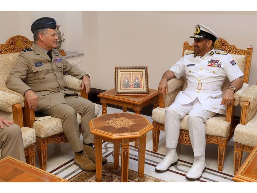 التقى الفريق الركن بحري عبدالله بن خميس الرئيسي رئيس أركان القوات المسلحة العمانية، اليوم، الفريق جوي مارتن إليوت سامبسون كبير مستشاري وزارة الدفاع البريطانية لمنطقة الشرق الأوسط وشمال إفريقيا، الذي يزور عمان حاليا.
