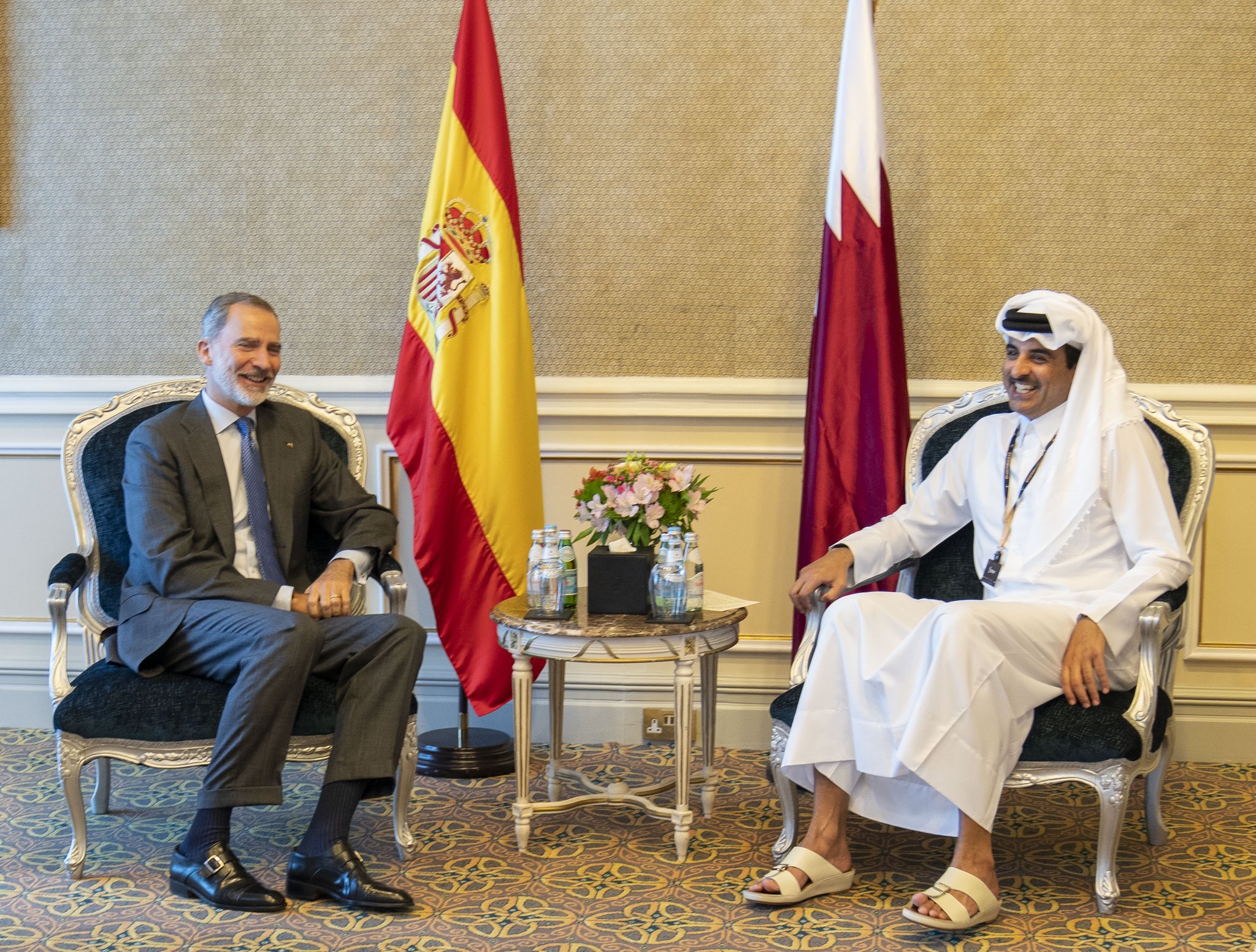 التقى حضرة صاحب السمو الشيخ تميم بن حمد آل ثاني أمير البلاد المفدى، صباح اليوم، في فندق /ريتز كارلتون/ الدوحة، مع جلالة الملك فيليبي السادس ملك إسبانيا، والوفد المرافق، الذي يزور البلاد لحضور جانب من مباريات بطولة كأس العالم FIFA قطر 2022.