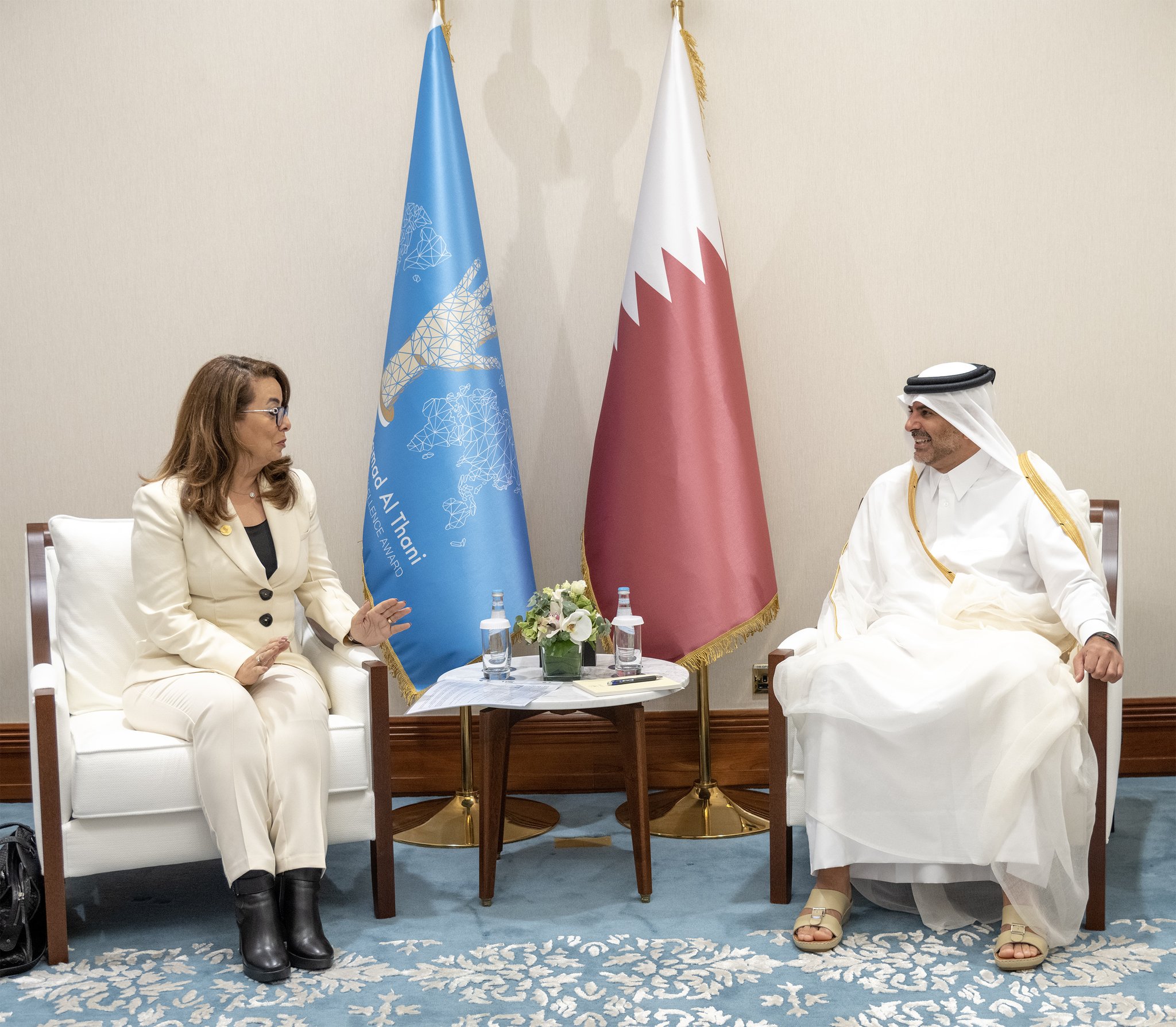 استقبل معالي الشيخ خالد بن خليفة بن عبدالعزيز آل ثاني رئيس مجلس الوزراء ووزير الداخلية، على حدة، كلا من سعادة الدكتورة غادة فتحي والي وكيل الأمين العام للأمم المتحدة والمدير التنفيذي لمكتب الأمم المتحدة للمخدرات والجريمة، وسعادة السيد ألكسندر زويف الأمين العام المساعد لسيادة القانون والمؤسسات الأمنية، وذلك بمناسبة انعقاد النسخة السادسة لحفل جائزة /سمو الشيخ تميم بن حمد آل ثاني الدولية للتميز في مكافحة الفساد/، اليوم بفندق شيراتون الدوحة.