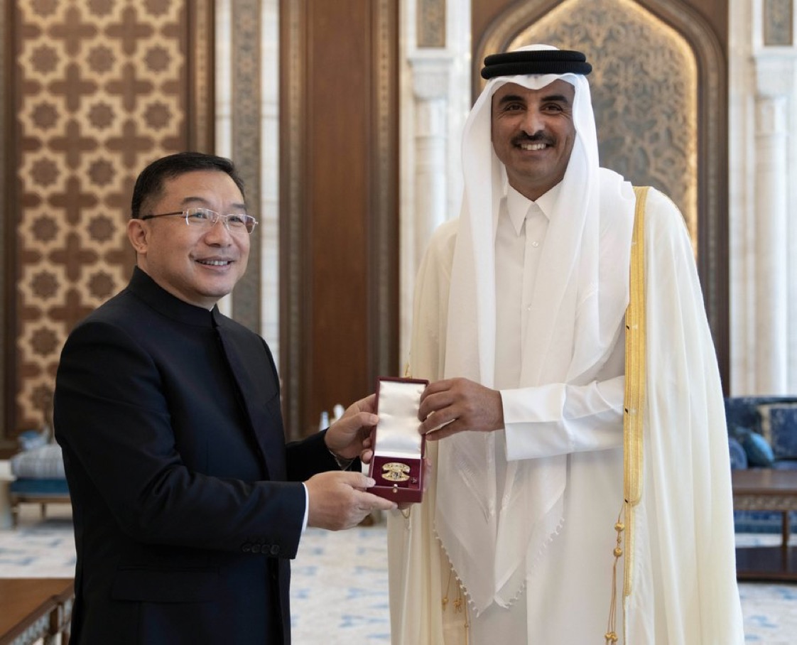 وقد منح سمو الأمير وسام الوجبة للسفير الصيني تقديرا لدوره في المساهمة في تعزيز العلاقات الثنائية بين قطر والصين، متمنيا له التوفيق فيما سيعهد إليه من مهام في المستقبل، وللعلاقات مزيدا من التطور والنماء. من جانبه، أعرب السفير عن شكره وتقديره لسمو أمير البلاد المفدى، وللمسؤولين في الدولة على ما لقيه من تعاون أسهم في نجاح عمله بالبلاد.