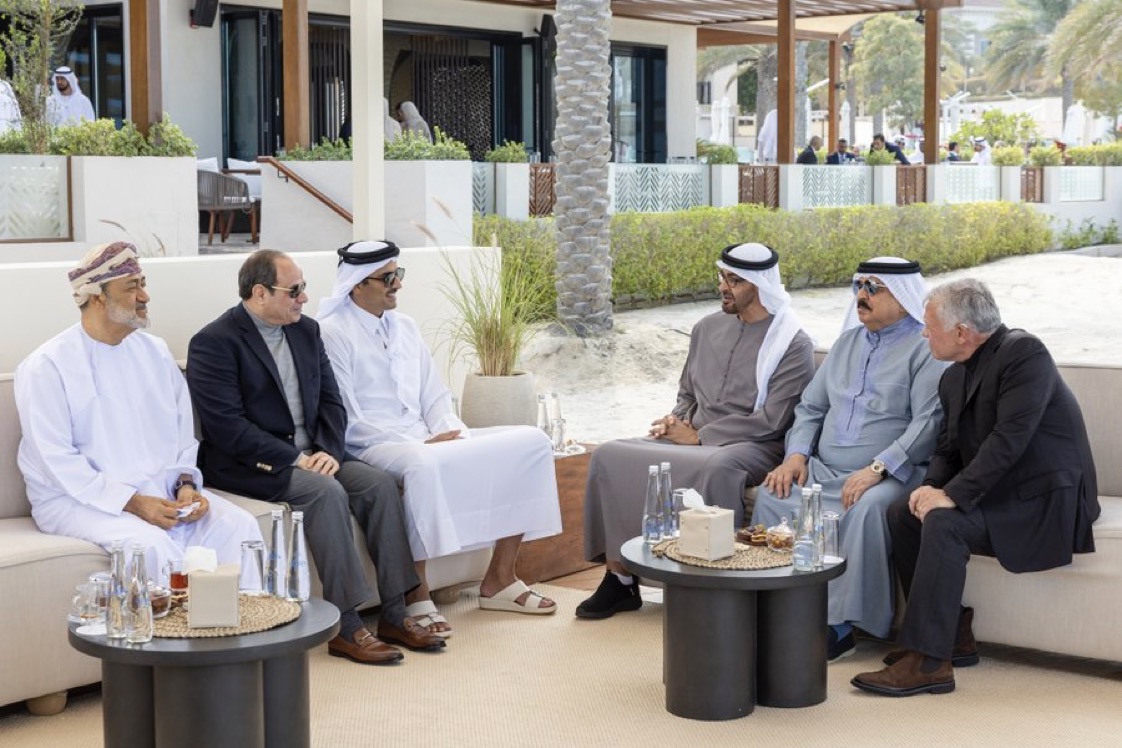 شارك حضرة صاحب السمو الشيخ تميم بن حمد آل ثاني أمير البلاد المفدى مع إخوانه جلالة السلطان هيثم بن طارق سلطان عمان الشقيقة، وجلالة الملك حمد بن عيسى آل خليفة ملك مملكة البحرين الشقيقة، وجلالة الملك عبدالله الثاني ابن الحسين ملك المملكة الأردنية الهاشمية الشقيقة، وفخامة الرئيس عبدالفتاح السيسي رئيس جمهورية مصر العربية الشقيقة، في اللقاء الأخوي التشاوري الذي عقد اليوم بدعوة من صاحب السمو الشيخ محمد بن زايد آل نهيان رئيس دولة الإمارات العربية المتحدة الشقيقة تحت عنوان “الازدهار والاستقرار في المنطقة”، وذلك في منتجع سانت ريجيس بجزيرة السعديات في أبوظبي بدولة الإمارات العربية المتحدة الشقيقة.