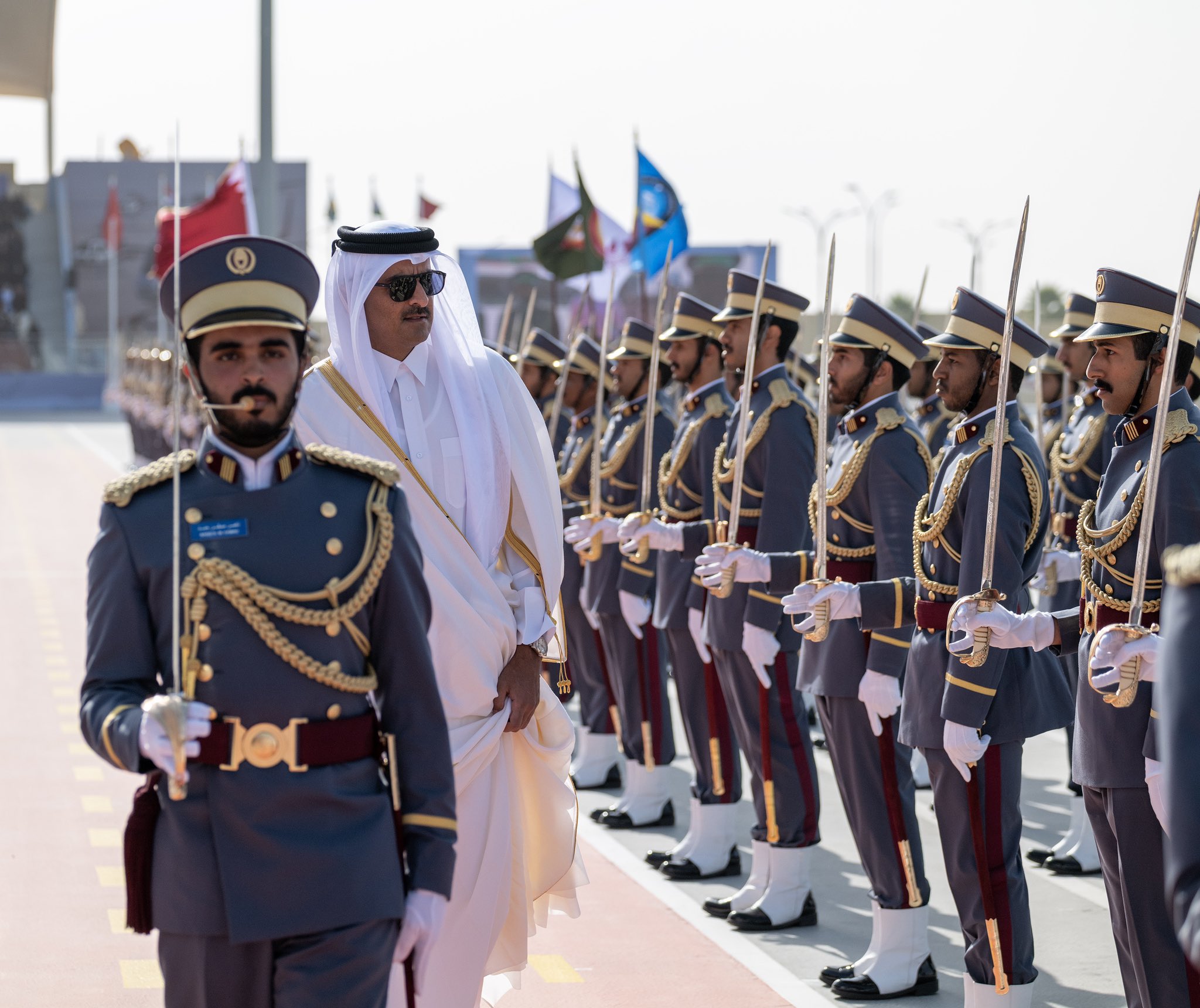 تفضل حضرة صاحب السمو الشيخ تميم بن حمد آل ثاني أمير البلاد المفدى، فشمل برعايته الكريمة، حفل تخريج الدفعة العاشرة من الطلبة المرشحين بكلية الزعيم محمد بن عبدالله العطية الجوية، وذلك بمقر الكلية بقاعدة العديد الجوية، صباح اليوم.