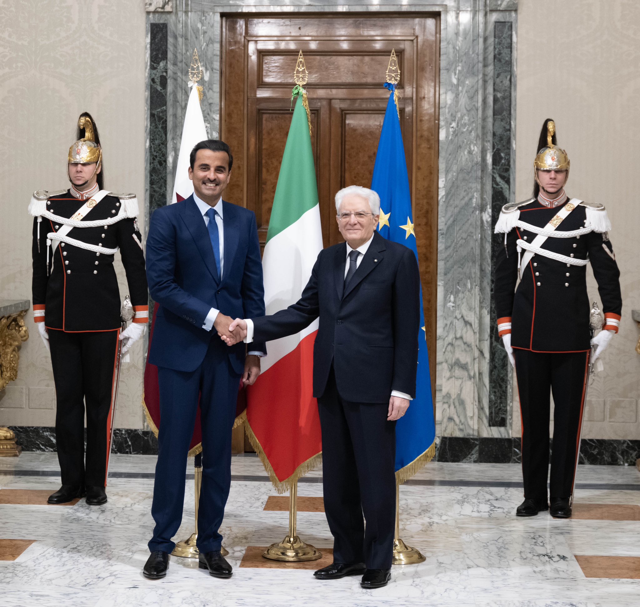 أكد حضرة صاحب السمو الشيخ تميم بن حمد آل ثاني أمير البلاد المفدى على العلاقات المميزة والتعاون البناء بين دولة قطر والجمهورية الإيطالية، مشيرا سموه إلى وجود فرص واعدة لمزيد من التعاون بين البلدين، لا سيما في مجالات الدفاع والأمن والطاقة.