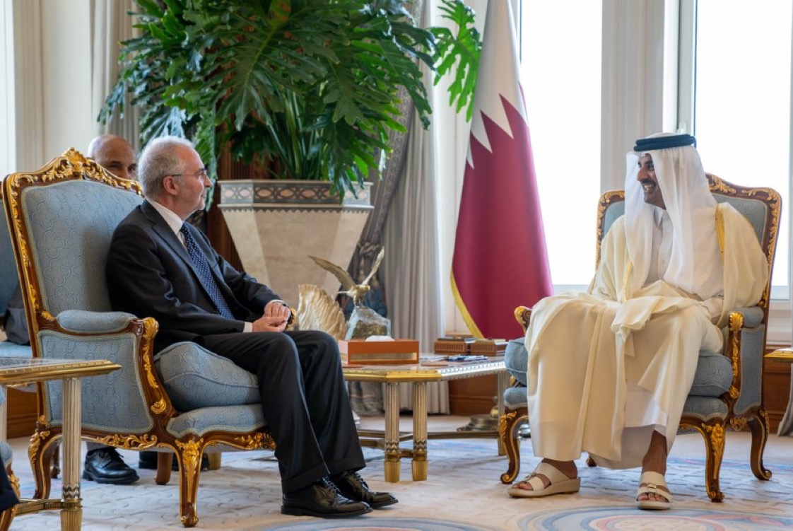 استقبل حضرة صاحب السمو الشيخ تميم بن حمد آل ثاني أمير البلاد المفدى، بمكتبه في الديوان الأميري صباح اليوم، سعادة القاضي بيترو كورزيو رئيس محكمة النقض العليا بالجمهورية الإيطالية الصديقة، والوفد المرافق له، وذلك للسلام على سموه بمناسبة زيارته للبلاد.