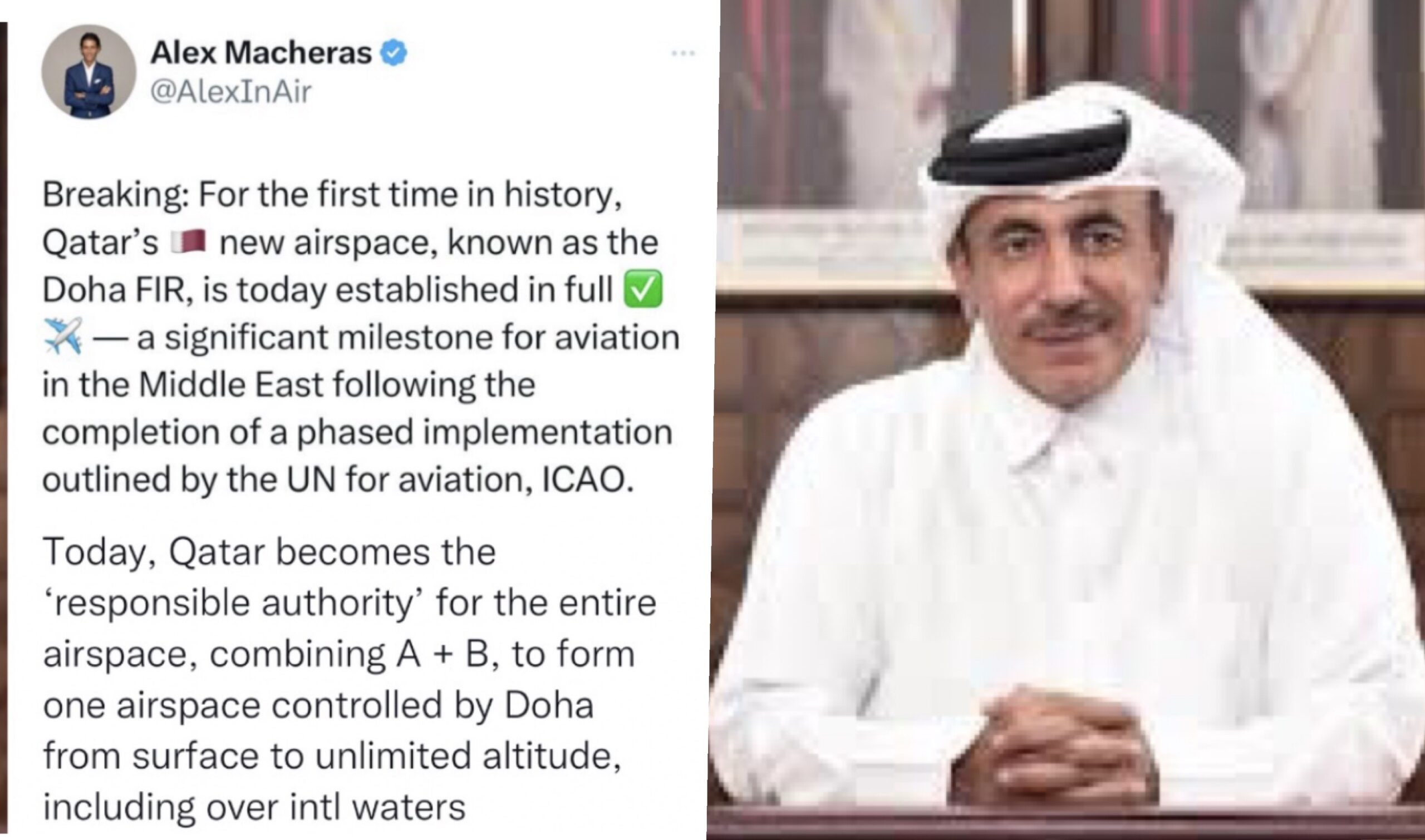 وقد نشر خبير الطيران أليكس ماشيراس في حسابه بمواقع التواصل الاجتماعي عددا من التغريدات قال فيها : لأول مرة في التاريخ ، يعد المجال الجوي الجديد لقطر ، أحد المعالم الهامة للطيران في الشرق الأوسط بعد الانتهاء من التنفيذ المرحلي الذي حددته الأمم المتحدة لمنظمة الطيران المدني الدولي.