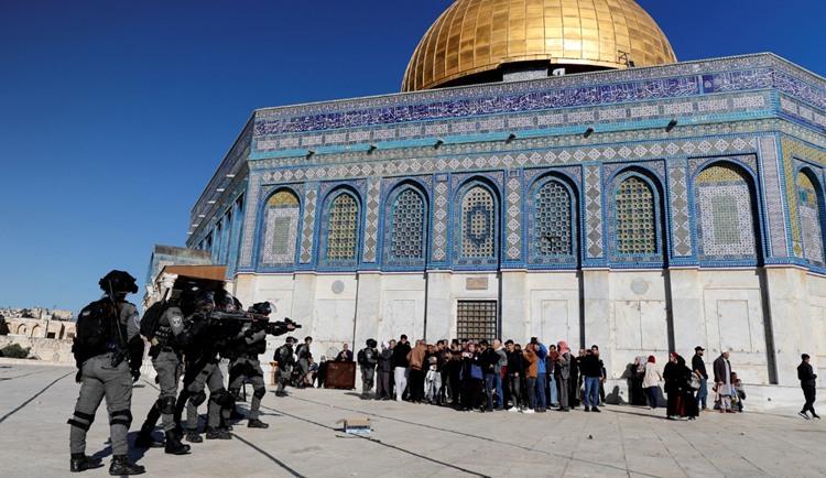 وشهد المسجد الأقصى في الأيام الماضية اقتحامات وحشية تخللها اعتداء على المصلين المعتكفين بالهروات وأعقاب البنادق، والرصاص المطاطي وقنابل الغاز السام، وإجبارهم على مغادرة ساحاته بالقوة، واعتقال المئات.