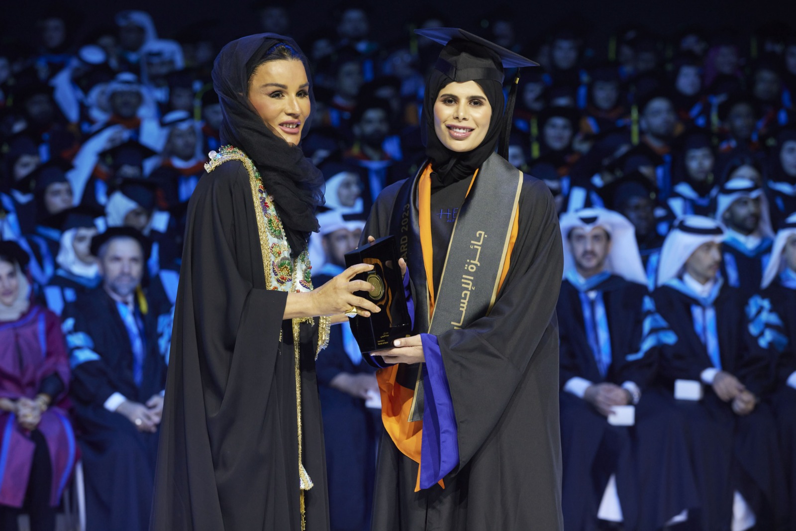 كما أهدت سعادة الشيخة هند بنت حمد آل ثاني كافة خريجي دفعة 2023 تذكارا مصمما محليا، مستوحى من معالم المدينة التعليمية، يخلد رحلتهم التعليمية الفريدة.