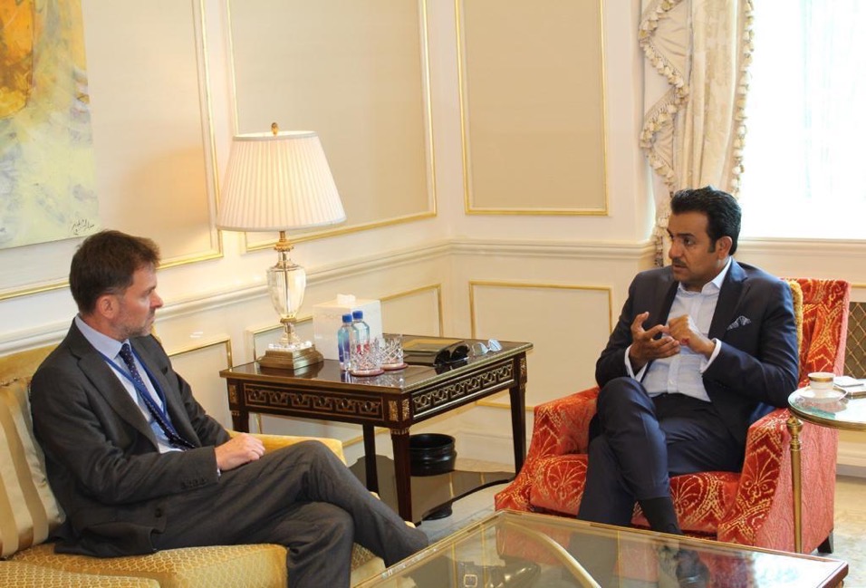 اجتمع سعادة الدكتور مطلق بن ماجد القحطاني، المبعوث الخاص لوزير الخارجية لمكافحة الإرهاب والوساطة في تسوية المنازعات، مع سعادة السيد أليستير توتي، مدير إدارة مكافحة الإرهاب بوزارة الخارجية البريطانية، وذلك على هامش أسبوع الأمم المتحدة الثالث لمكافحة الإرهاب بنيويورك، الذي يعقد خلال الفترة من 19 – 23 من يونيو الحالي.