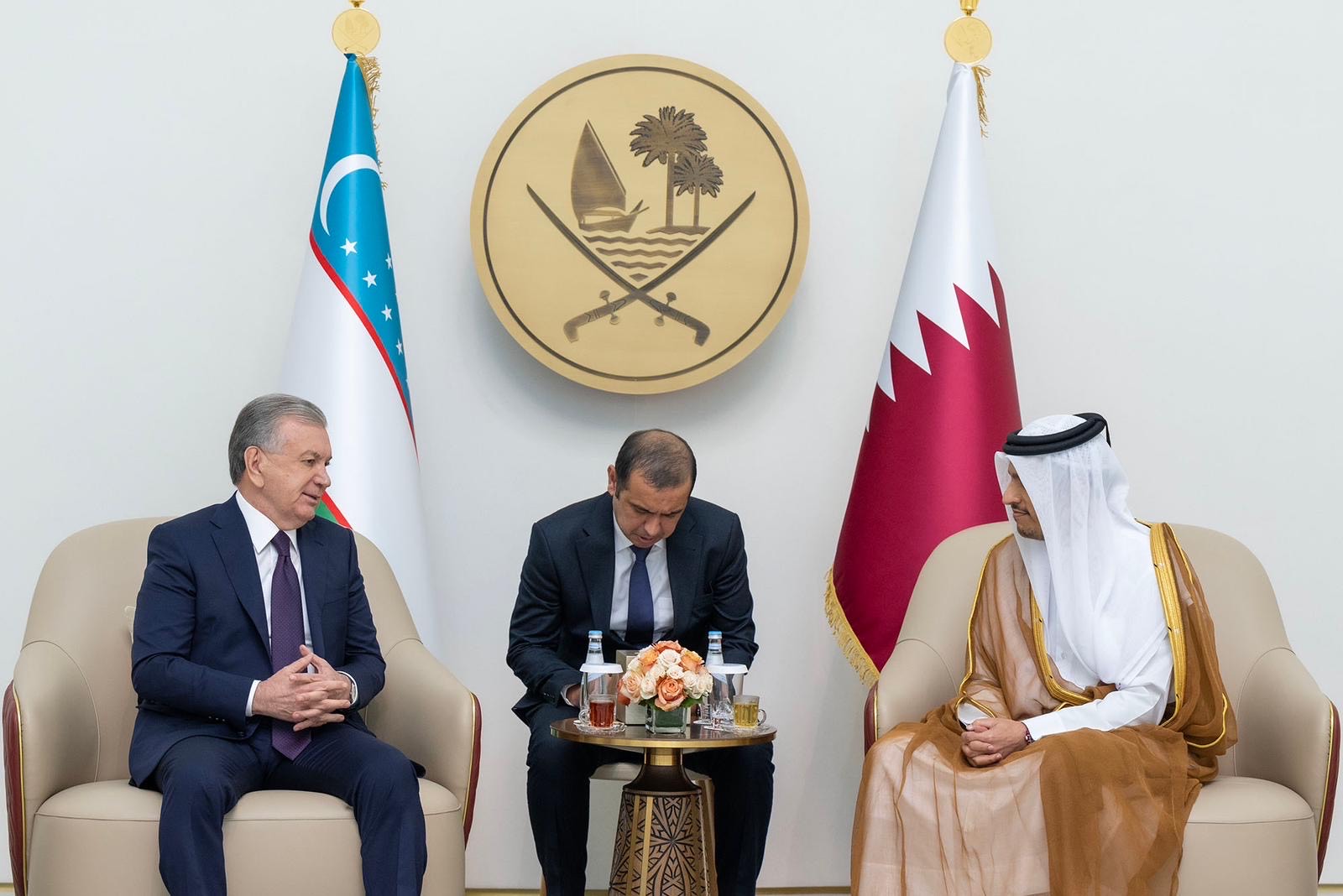 كما حضر الاستقبال سعادة الدكتور محمد بن عبدالعزيز بن صالح الخليفي وزير الدولة بوزارة الخارجية، وسعادة السيد بختيار سعيدوف وزير الخارجية بجمهورية أوزبكستان، وسعادة السيد حسن بن حمزة هاشم سفير دولة قطر لدى أوزبكستان، وسعادة السيد بهرمجان أعلايوف سفير أوزبكستان لدى الدولة.