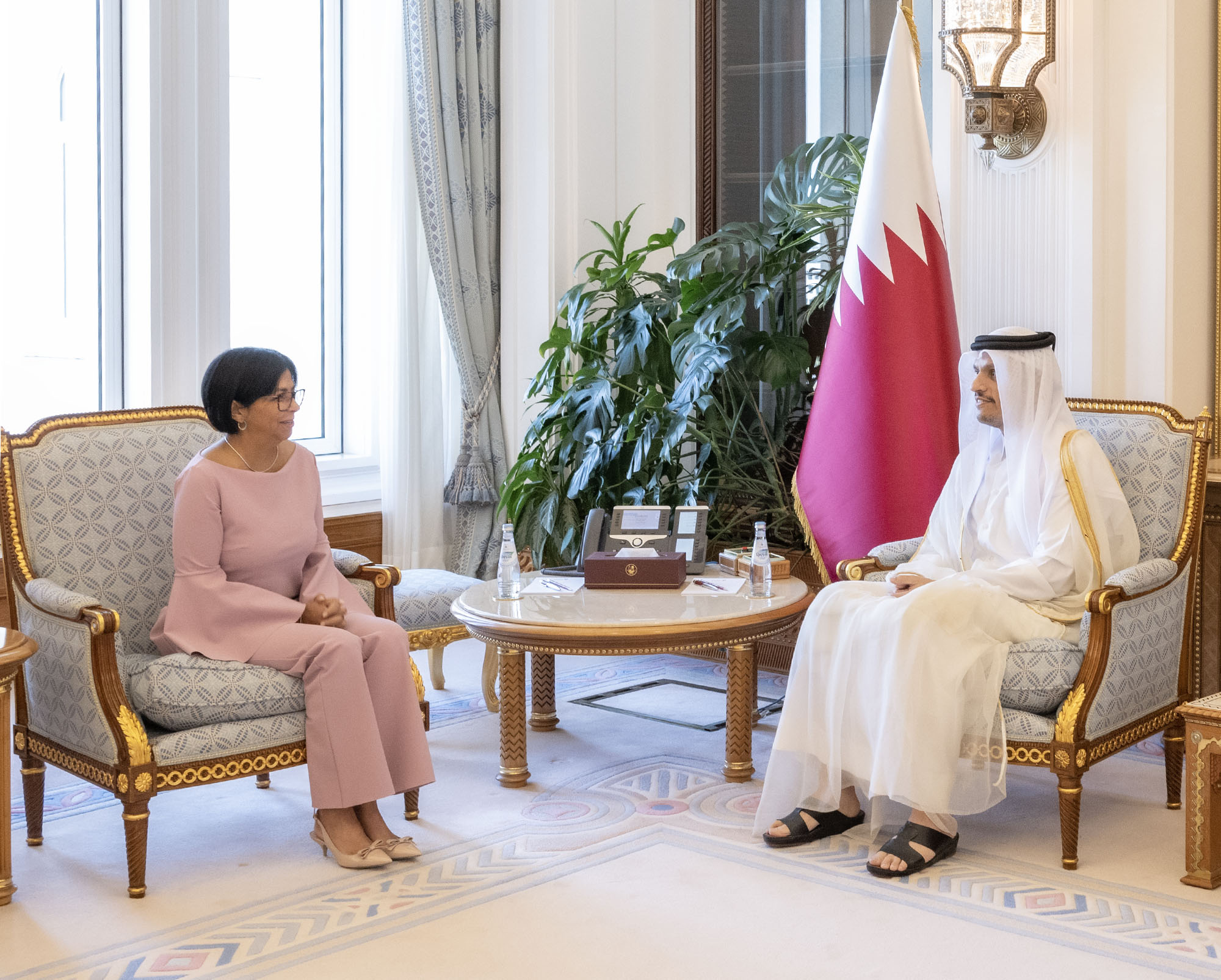 استقبل معالي الشيخ محمد بن عبدالرحمن بن جاسم آل ثاني رئيس مجلس الوزراء وزير الخارجية، اليوم، في مكتبه بالديوان الأميري، سعادة الدكتورة ديلسي الوينا رودريغيز غوميز نائب رئيس جمهورية فنزويلا البوليفارية الصديقة، التي تزور البلاد حاليا.