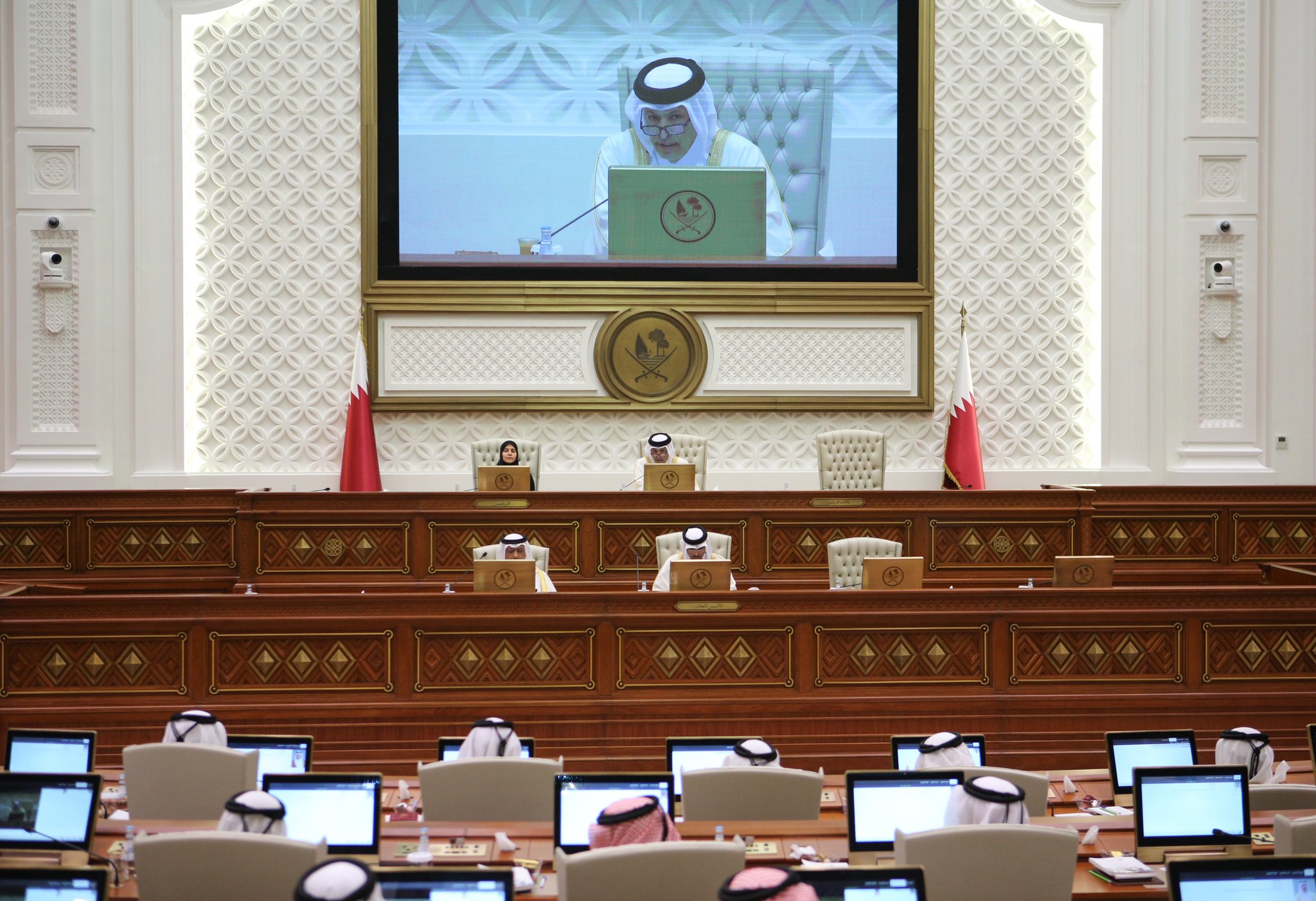تميم بن حمد آل ثاني أمير دولة قطر بعد ذلك، رفع سعادة السيد حسن بن عبدالله الغانم رئيس مجلس الشورى، باسمه وباسم أعضاء مجلس الشورى، أسمى آيات الشكر والعرفان لحضرة صاحب السمو الشيخ تميم بن حمد آل ثاني أمير البلاد المفدى “حفظه الله”، على تفضل سموه بافتتاح دور انعقاد جديد للمجلس، في مسيرته الوطنية المباركة.