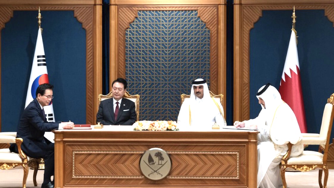 شهد حضرة صاحب السمو الشيخ تميم بن حمد آل ثاني أمير البلاد المفدى، وفخامة الرئيس يون سوك يول رئيس جمهورية كوريا الصديقة، اليوم في الديوان الأميري، التوقيع على عدد من مذكرات التفاهم بين حكومتي البلدين.