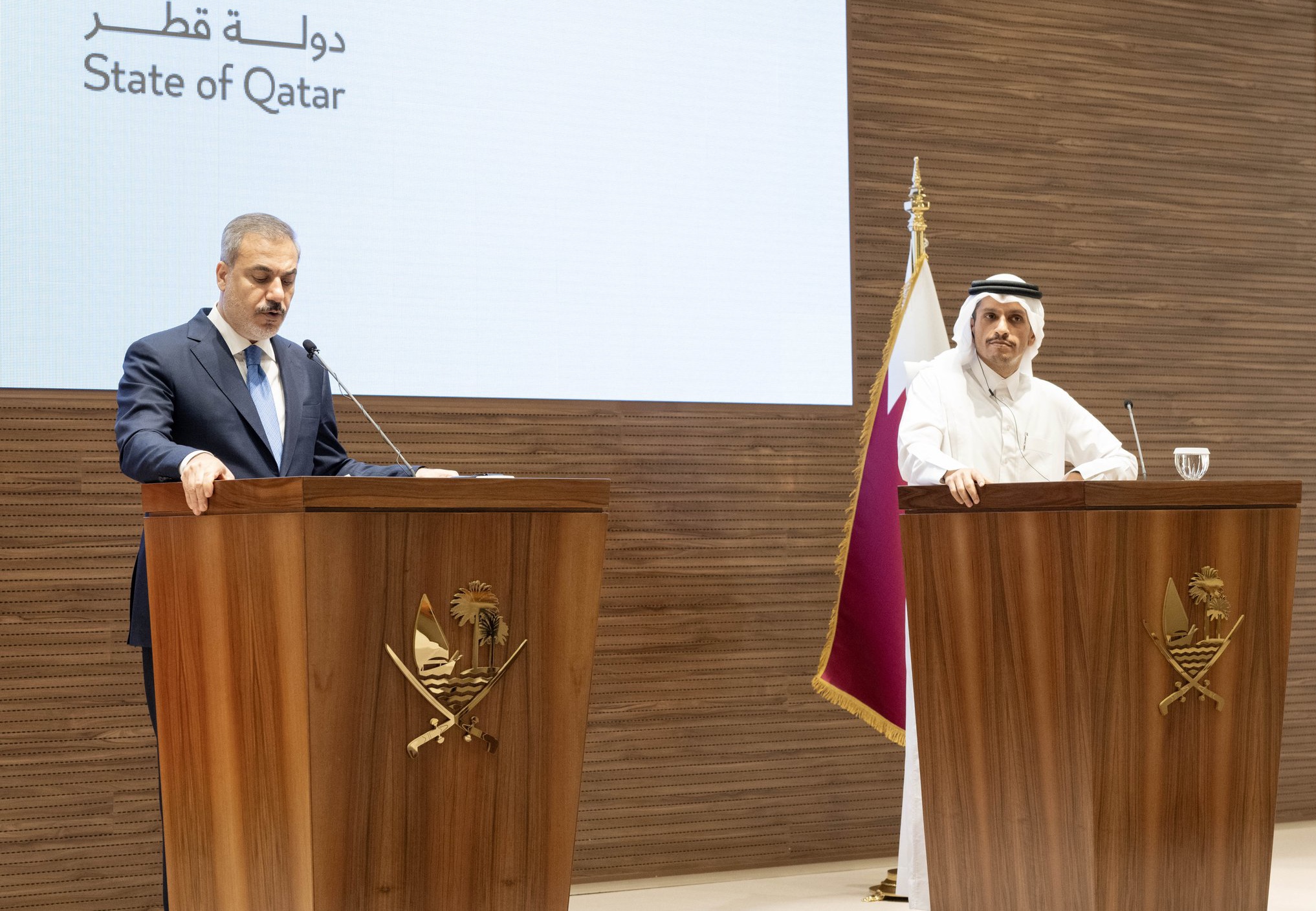 بدوره، ثمن سعادة السيد هاكان فيدان وزير الخارجية التركي جهود دولة قطر ودورها البناء لخفض التصعيد.. كما شدد على أن بلاده تولي أهمية كبيرة للدور القطري تجاه ملف الرهائن وإطلاق سراحهم.