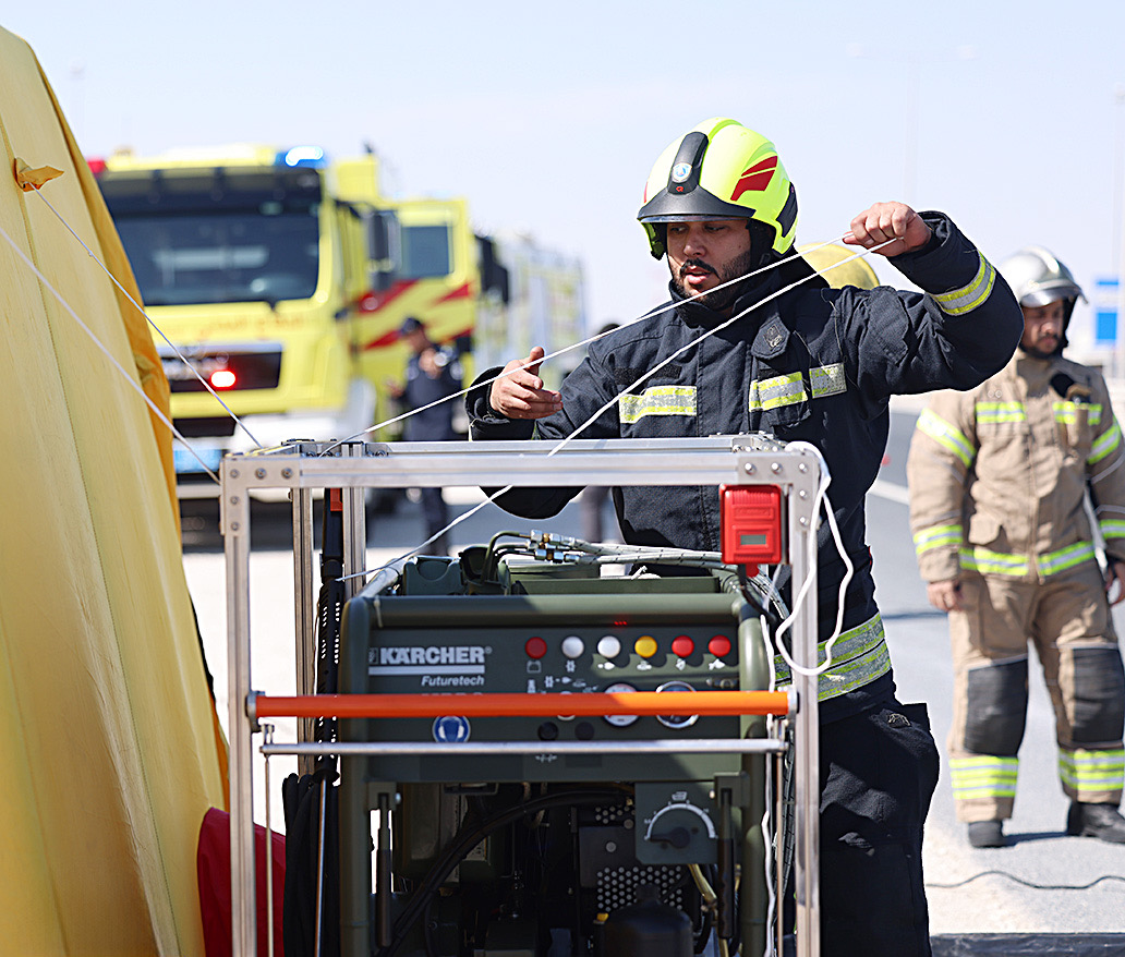 وشملت التمارين الميدانية في اليوم الثاني سيناريوهات تعالج أحداثا ومواقف مبنية على كافة أنواع المخاطر والتحديات المحتملة.