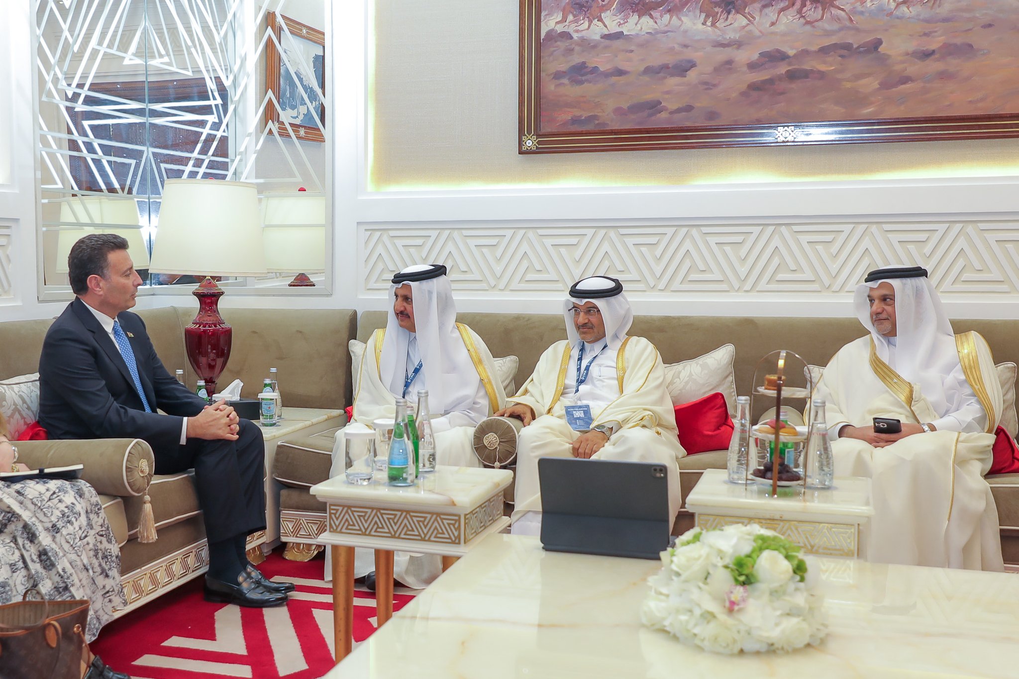 اجتمع سعادة الشيخ خليفة بن جاسم بن محمد آل ثاني رئيس غرفة قطر، اليوم، مع سعادة السيد أحمد الصفدي رئيس مجلس النواب الأردني، وذلك على هامش “منتدى الدوحة 2023”.