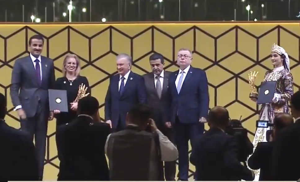 وكان سمو الأمير المفدى وفخامة رئيس جمهورية أوزبكستان قاما بإزاحة الستار في وقت سابق عن النسخة السابعة من نصب الجائزة في حديقة مدينة طشقند.