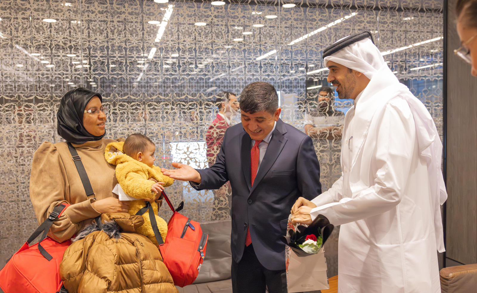 وكان في استقبال الجرحى في الدوحة، سعادة الدكتور مصطفى كوكصو، سفير الجمهورية التركية لدى الدولة، وسعادة السيد حمد يوسف أحمد راشد المالكي، مدير مكتب وزير الدولة للتعاون الدولي بوزارة الخارجية.